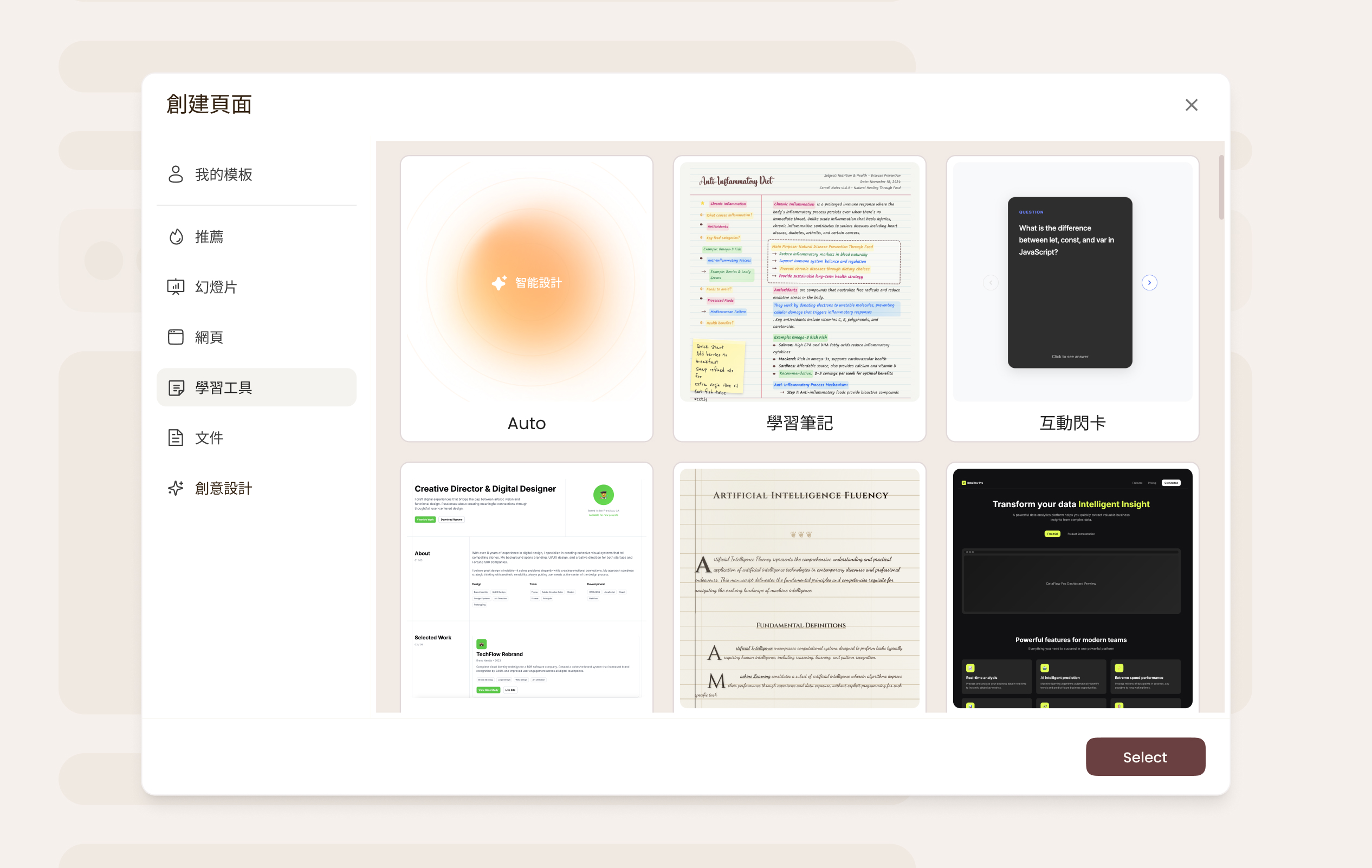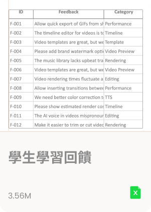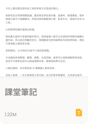 告訴 AI 您的教學需求並選擇相應模板,系統會立即生成教案、試題、學習單等教學素材,可隨時調整與下載。