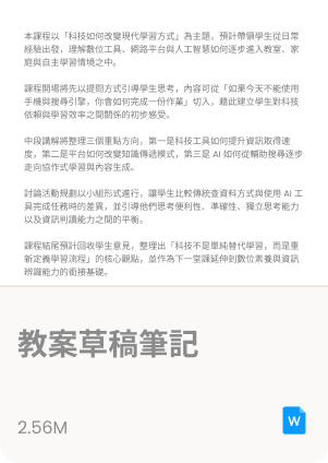 快速生成教案講義、測驗題目、互動網頁等教學資源,備課效率全面升級